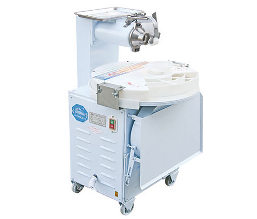 2、接通電源,檢查絞龍轉(zhuǎn)向以螺旋向前推進(jìn)為正確。使用時(shí)將面團(tuán)連續(xù)放入絞龍?bào)w,切刀可自行切下定量面團(tuán)落入成型盤,成型后饅頭自動(dòng)拋出。生產(chǎn)作業(yè)時(shí),操作者站在入面料口一側(cè),以免被刀劃傷,投面時(shí)切勿用硬物擠壓,防止零件異常損壞,使用時(shí)灑在吊輪上少量面粉,避免粘結(jié)。