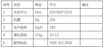 4、加工不同規(guī)則的饅頭要更換成型盤和出料口。